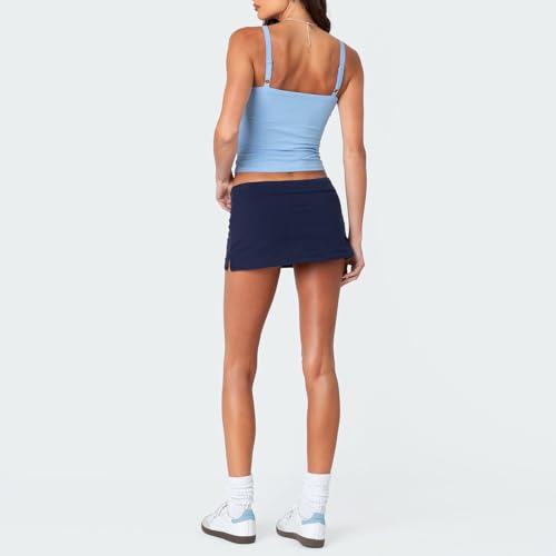 Women's Fashion Mini Skirts Solid Color Drawstring Elastic Waist Skirts Summer Casual Short Skirts (Dark Blue, M) 5