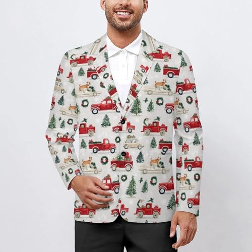 Christmas Vehicles Tree Mens Suit Jacket Lapel Blazers V Neck Button Business Coat Tuxedo for Wedding Party 1