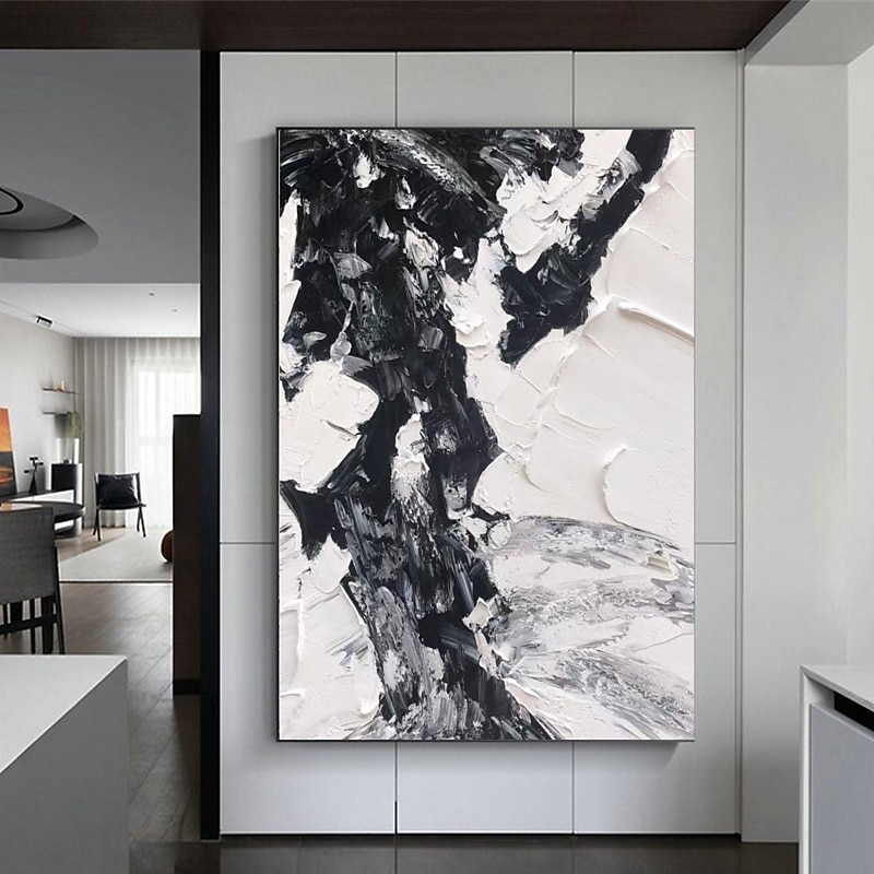 Handmade Hand Painted Oil Painting Wall Art Modern Abstract Black and White Painting Home Decoration Decor Rolled Canvas No Frame Unstretched 1