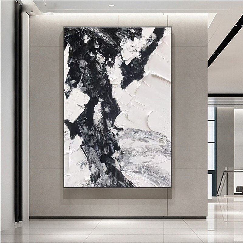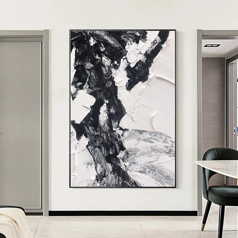 More information about Handmade Hand Painted Oil Painting Wall Art Modern Abstract Black and White Painting Home Decoration Decor Rolled Canvas No Frame Unstretched