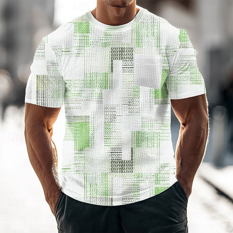 Men's Geometric Abstract Waffle Shirt Short Sleeve T shirt 3D Print Crew Neck Shirt Fashion Daily Designer Street Casual Daily Red Blue Green Summer Spring Clothing Apparel S M L XL XXL XXXL 3