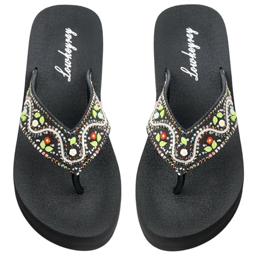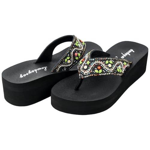More information about Lowkeyray Women's Glittering Rhinestone Embellished Wedge Platform Fancy Flip-Flop Sandals for Ultimate Comfort and Glamou,Sparkle & Style.