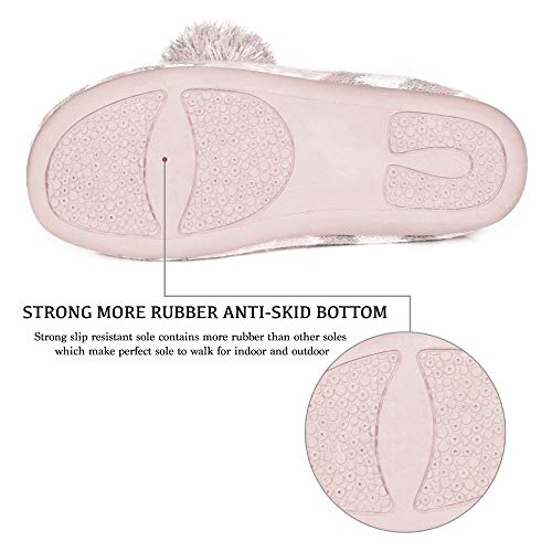 • AS COZY AS YOUR FAVORITE SWEATER : The knit upper with poms decor add elegant, luxurious and delicate touch to these slippers. A beautifully designed look will have you feeling stylish and comfy. Slip into soft, soothing, weightless comfort with stabilizing support, you will find quick & easy comfort in a second with these open back & closed toe slip on slippers.