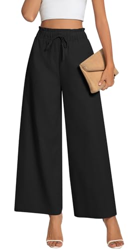 More information about Anyally Women's Linen Summer Palazzo Pants Casual Flowy Wide Leg Drawstring High Waist Beach Trousers with Pockets