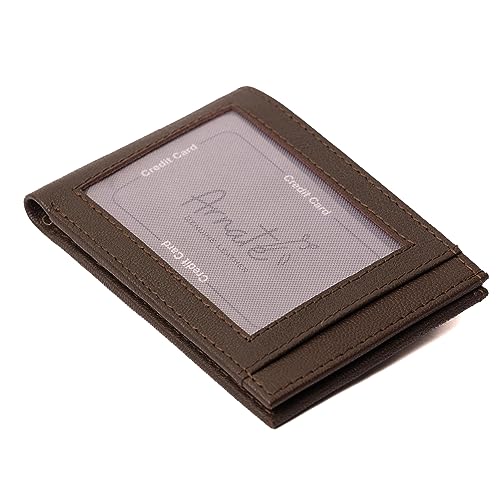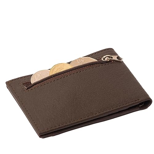 Unisex Mens Womens Slim Minimalist Genuine Leather Card Wallet RFID Block Sleek Bifold Brown Zip Coins Pocket, BROWN, RFID Safe Genuine Leather Cards Wallet 1