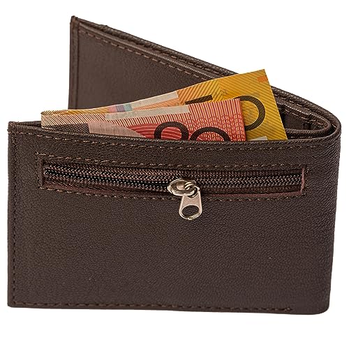 HOT ! Unisex Mens Womens Slim Minimalist Genuine Leather Card Wallet RFID Block Sleek Bifold Brown Zip Coins Pocket, BROWN, RFID Safe Genuine Leather Cards Wallet