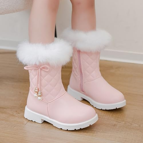 Girls Boots Warm Winter Boots Kids Soft Plush Lining Fur Booties Zipper Snow Bootie Indoor Outdoor Shoes for Toddler 2