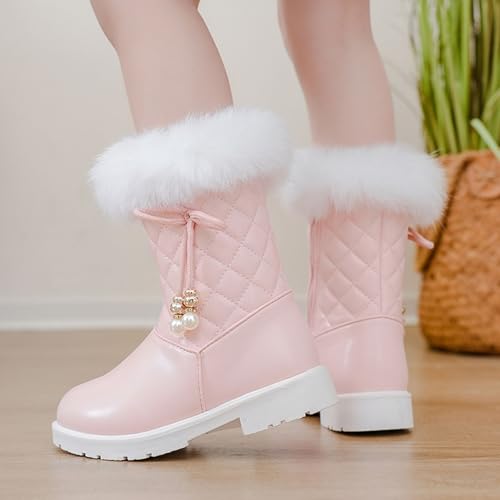 Girls Boots Warm Winter Boots Kids Soft Plush Lining Fur Booties Zipper Snow Bootie Indoor Outdoor Shoes for Toddler 5