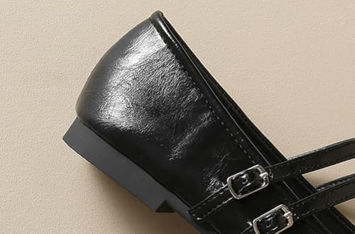 Niction Womens Mary Jane Flat Shoes Retro Faux Suede Square Toe Ballet Flat Shoes Slip On Metal Buckle Double Strap Work Wedding Dressy 5