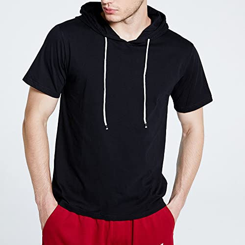 JEsilunmaMY Mens Short Sleeve Drawstring Hooded T-Shirt Loose Casual Cotton Pullover Tees Solid Color Muscle Gym Hoodies 4
