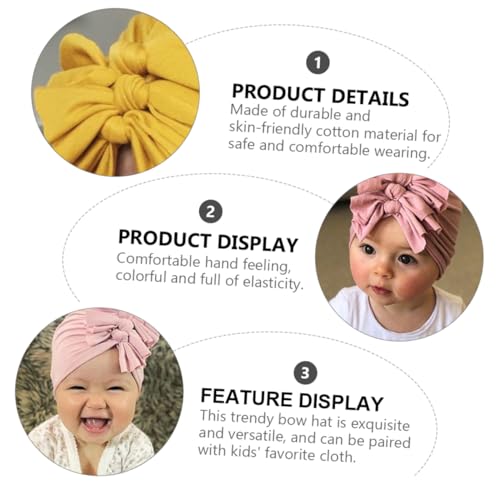 More information about 4Pcs Adorable Hats Soft Cotton Pullover Caps with Pleated Bow Fashionable Headwear for Boy Girl Years Dusty