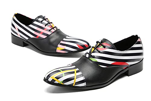 Santimon Men's Oxfords Dress Casual Leather Formal Business Shoes Fashion Striped Pattern Western Walking Shoes for Men 7