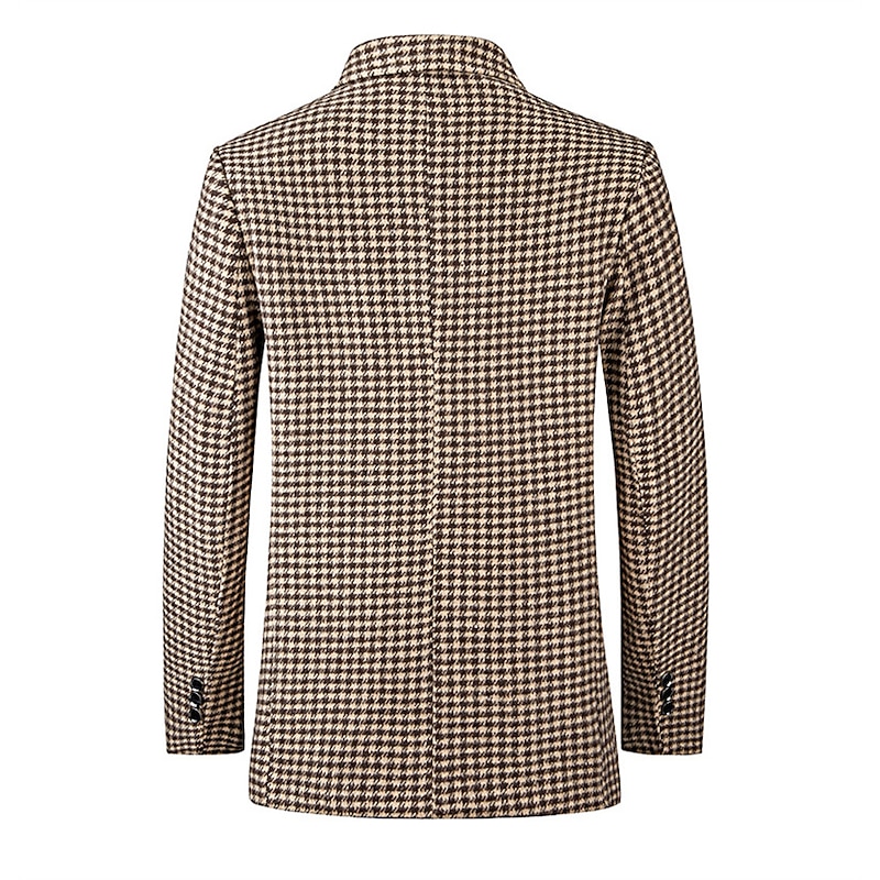 Men's Blazer Cocktail Attire Business Formal Evening Wedding Party Fashion Casual Spring &  Fall Polyester Plaid / Check Geometic Pocket Buttons Casual / Daily Single Breasted Blazer White Camel 11