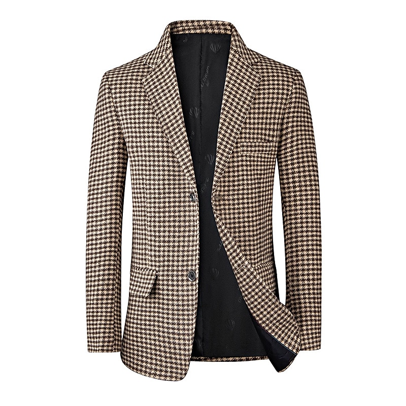 Men's Blazer Cocktail Attire Business Formal Evening Wedding Party Fashion Casual Spring &  Fall Polyester Plaid / Check Geometic Pocket Buttons Casual / Daily Single Breasted Blazer White Camel 13
