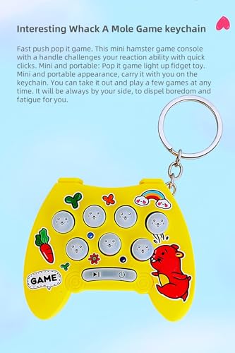 • Interesting Whack A Mole Game keychain: Fast push pop it game. This mini hamster game console with a handle challenges your reaction ability with quick clicks.
