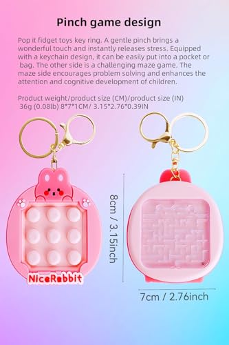 • Pinch game design: Pop it fidget toys key ring. A gentle pinch brings a wonderful touch and instantly releases stress. Equipped with a keychain design, it can be easily put into a pocket or bag. The other side is a challenging maze game. The maze side encourages problem solving and enhances the attention and cognitive development of children.