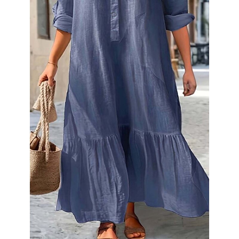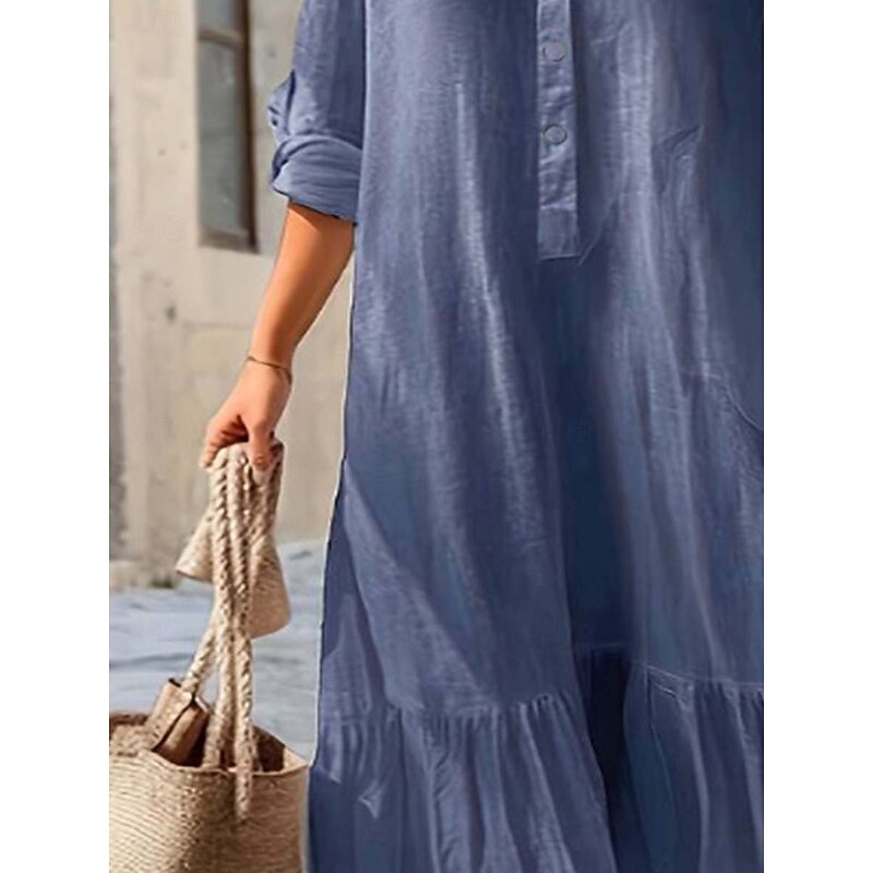 More information about Women's Long Dress Maxi Dress Linen-Inspired Dresses Hawaiian Regular Fit Solid Color Long Sleeve Shirt Collar Add royal blue khaki Summer Spring