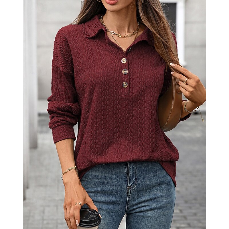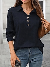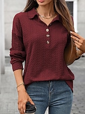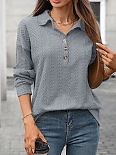 More information about Women's Pullover Sweatshirt Plain Streetwear Casual Comfy Long Sleeve V Neck Regular Tops Street Holiday Going out Buttons Wine Navy Blue Green Gray Fall