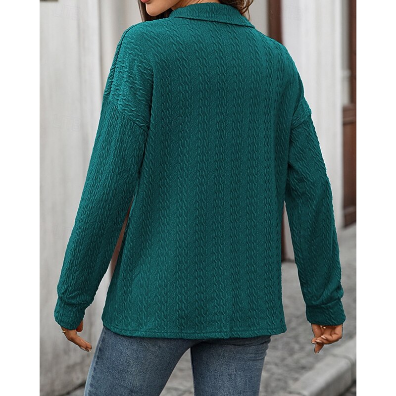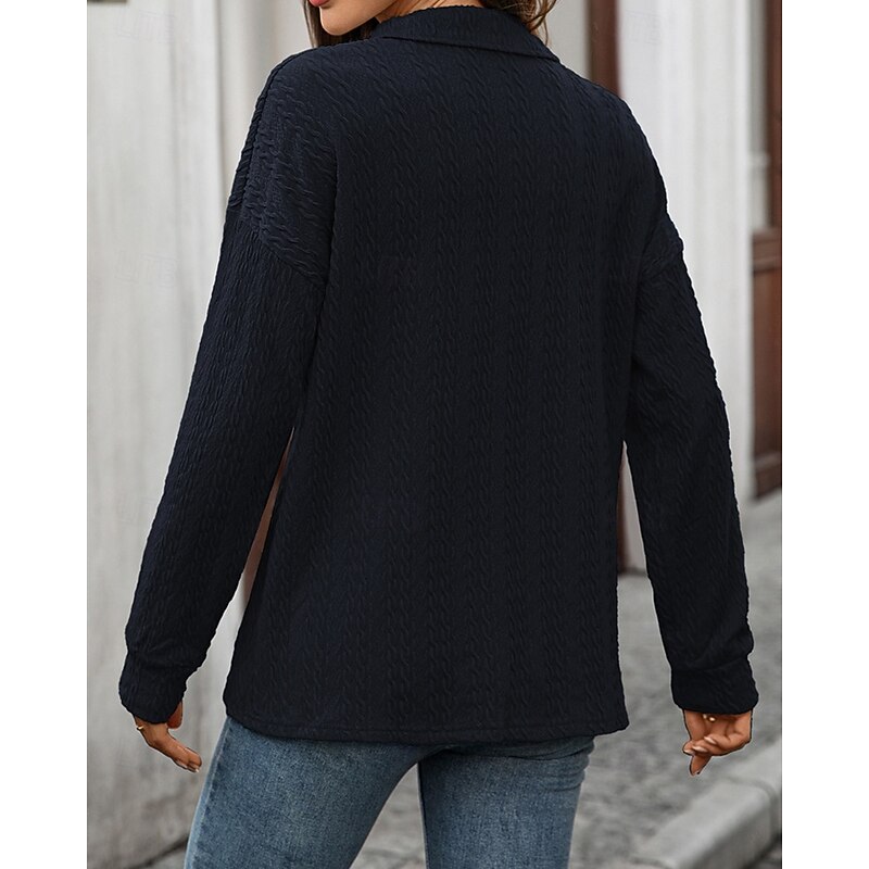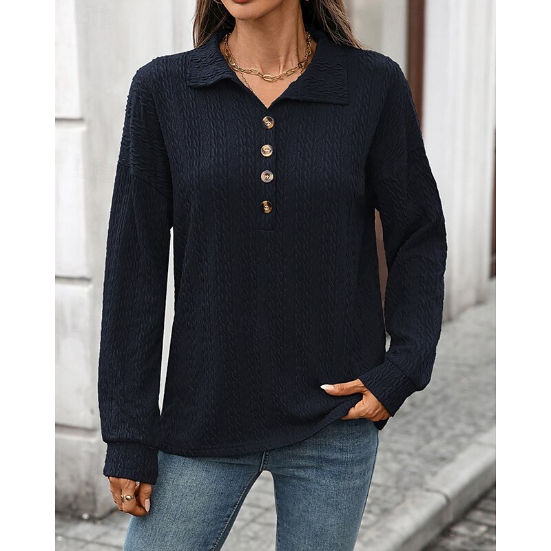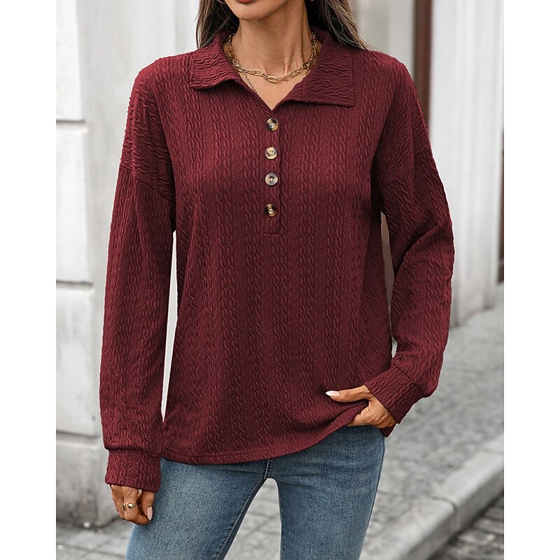Women's Pullover Sweatshirt Plain Streetwear Casual Comfy Long Sleeve V Neck Regular Tops Street Holiday Going out Buttons Wine Navy Blue Green Gray Fall 13