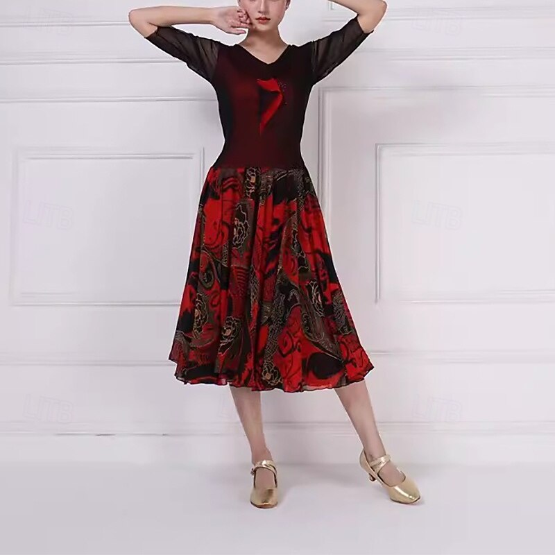 $189.99 - Ballroom Dance Dress Printing Splicing Women's Performance Party Half Sleeve Spandex Imitation Silk 2025. Shop for cheap Standard  Ballroom online? Buy at lightinthebox.com on sale today!