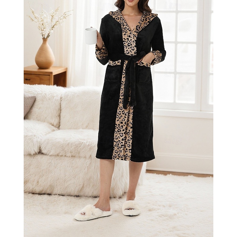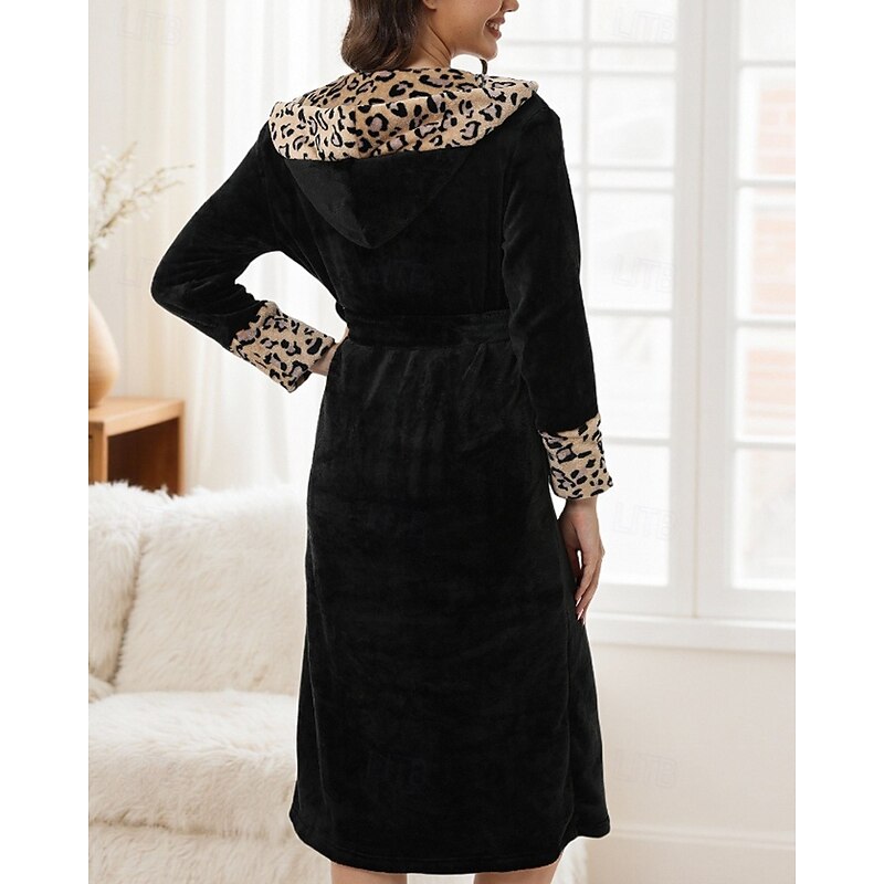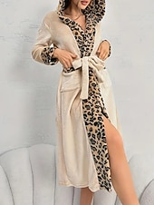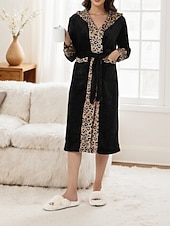More information about Women's Pajamas Nightgown Fashion Leopard Lace Patchwork Pocket Vacation Home Bed Long Sleeve V Neck Black Khaki Rose Red Fall Winter Tailored Fit