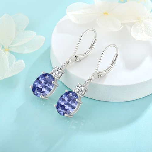 Oval Dangle Drop Earrings for Women 925 Sterling Silver Leverback Earrings Birthstone Jewelry Gifts for Her 5