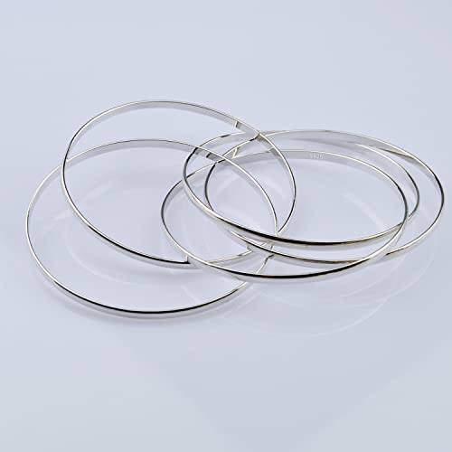 • PURE 925 SILVER - Handcrafted of 100% 925 Sterling silver is hypoallergenic and nickel-free making this jewelry a great choice for individuals with very sensitive skin. Bright and shiny with smooth edges all around, this Bangle is very elegant,and you will get many compliments and focus when you wear it.This bangle set consists of five Smooth bangles Diameter 60 -65- 68MM , Weighs 28 -30 g STYLE- An Ideal In Style Bracelet For Every Female &Male Wardrobe. A Guarantee That You will Love this