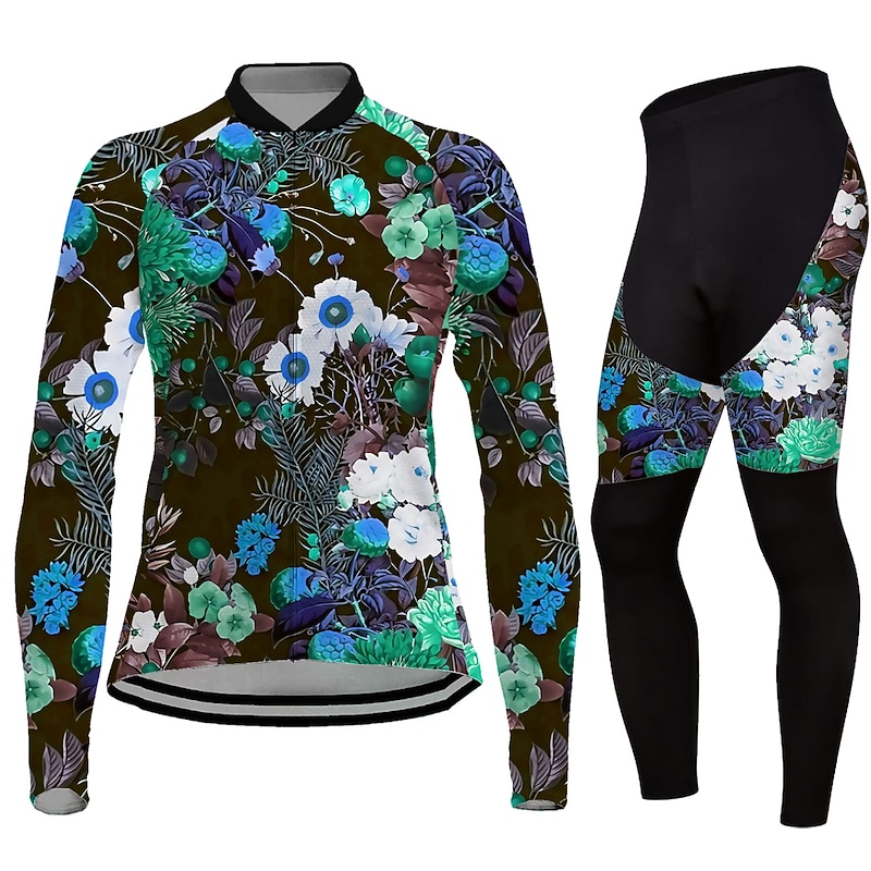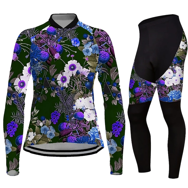 HOT ! Women's Cycling Jersey with Tights Long Sleeve Mountain Bike MTB Road Bike Cycling Black Blue Purple Graphic Floral Botanical Bike Clothing Suit Thermal Warm 3D Pad Warm Breathable Quick Dry Polyester