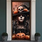 HOT ! Halloween Door Cover Outdoor Banners Pumpkin Witch 3D Psychedelic Dark Punk Gothic Style Party Outdoor Shooting Backgrounds Front Door Wall Porch Home Decor