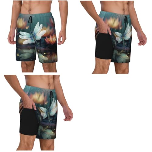 Men's Swim Trunks Quick Dry Board Shorts Dragonfly with Water Lily Beach Shorts with Pocket Bathing Suits for Men 1