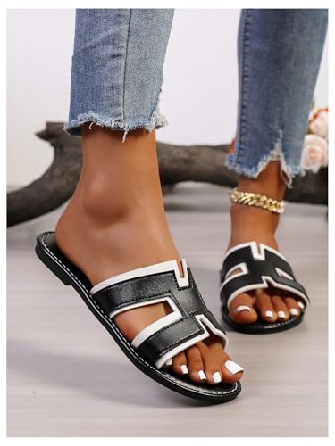 GORGLITTER Women's H Sandals Color Block Round Open Toe Dressy Flat Slides 1