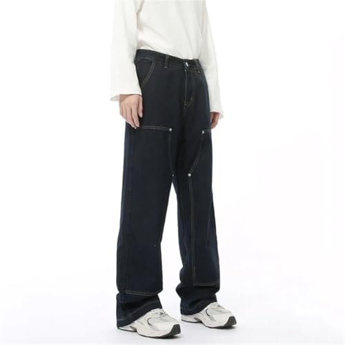 More information about Men's Jeans Deconstructed Washing Cargo Trousers Straight Wide Leg Denim Pants