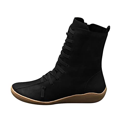 HOT ! Hbeylia High Top Fashion Sneakers Boots For Women Vintage Fashion Casual Leather Lace Up Wedge Low Heels Mid Calf Combat Boots Retro Non Slip Wide Round Toe Winter Fall Riding Dress Short Boots