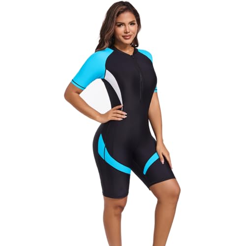 HOT ! Women's One Piece Swimsuit Short Sleeve Zip Front Rashguard Boyleg Sporty Swimsuit