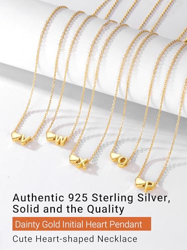 PROSILVER Initial Heart Necklace for Women, 925 Sterling Silver Tiny Heart Letter Necklace Siver, Gold Necklace, Come with Box 6