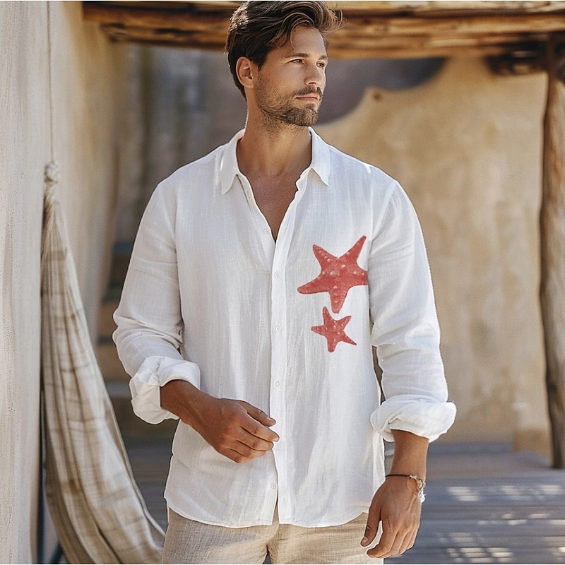$37.99 - Men's Shirt Cotton Linen Shirt Starfish Outdoor Vacation White Sky Blue Long Sleeve Rolled collar Summer Spring Clothing Apparel Buttons 2025. Shop for cheap Men's Elite Shirts online? Buy at lightinthebox.com on sale today!