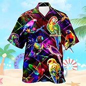 Highlights [Fabric] : Crafted from a lightweight 4-way stretch fabric, this shirt ensures breathability and comfort, ideal for warm weather and tropical destinations. The fabric blend is designed for durability and easy care, suitable for both machine and hand wash. [Fit] : Designed with a relaxed fit, this short-sleeve shirt offers comfort and ease of movement, perfect for casual outings and laid-back vacations. [Design Highlights] : Featuring an eye-catching 3D print of brightly colored parrots against a cosmic backdrop, this shirt stands out with its artistic and vibrant aesthetics. The Cuban collar and button-up design add a touch of classic style, while the vivid neon colors enhance the tropical feel. [Occasions] : Perfect for vacations, holidays, or outdoor activities, this shirt embodies a resort style suitable for beachwear, summer parties, and Hawaiian gatherings. Its bold design and artistic details make it ideal for those looking to make a statement. [Size Range] : Available in a wide range of sizes from S to 3XL, ensuring a suitable fit for various body types. This versatile sizing makes it a perfect choice for anyone looking for a stylish and comfortable addition to their vacation wardrobe.