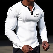 Highlights [Fabric] : Crafted from high-quality polyester with a waffle-knit texture, this men’s shirt provides breathable comfort and a stylish appearance. The micro-elastic nature of the fabric ensures a comfortable fit with ease of movement. [Fit] : Featuring a regular fit, this long-sleeve shirt is designed to accentuate an athletic silhouette, offering a sleek and contemporary look that fits well on various body types. [Design Highlights] : The shirt boasts a henley-style neckline, enhanced with buttons for a casual yet polished appearance. The predominantly white color, complemented by black detailing on the cuffs and collar area, adds a touch of contrast. The 3D graphic print and retro vintage cowboy pattern further elevate the shirt's designer appeal. [Occasions] : Ideal for spring and fall wear, this versatile shirt is perfect for outdoor sports, holidays, and festivals. Whether for casual outings or workouts, it seamlessly combines style with practicality. [Size Notice] : Available in a wide range of sizes from S to 5XL, it caters to adults looking for a comfortable and stylish fit.