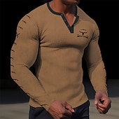 More information about Men's Graphic Cowboy Henley Shirt Waffle T Shirt Long Sleeve 3D Print Designer Retro Vintage Casual Sports Outdoor Holiday Festival Spring & Fall Black White Brown Army Green Henley Henley T-Shirt