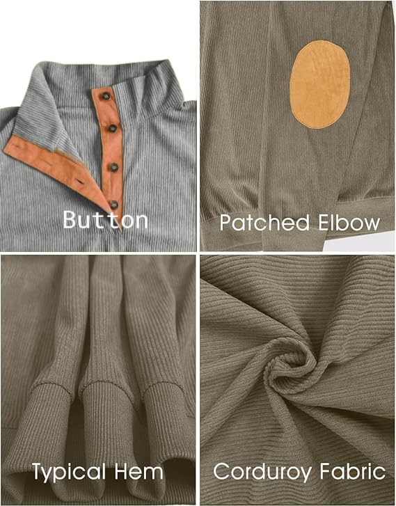 • Premium Faric - Men's corduroy long sleeve 1/4 button pullover sweatshirt, crafted from lightweight warm fabric, perfect for fall and winter seasons. The fabric is slightly stretchy, allowing you to wear it more freely.