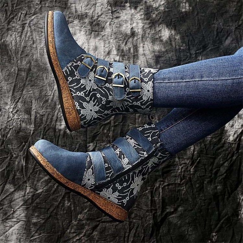 Highlights [Fabric] These women's boots are crafted from high-quality faux leather, ensuring durability and a luxurious appearance. The embroidered design adds a unique texture, and the vibrant floral patterns highlight the craftsmanship. [Silhouette] The boots are designed in a classic ankle bootie style with a flat heel, providing both comfort and a stylish, vintage look. They feature a mid-calf length with a round toe for extra comfort. [Design Highlights] With a side zipper for easy wear, these boots showcase intricate embroidery that taps into a vintage aesthetic. The bold, colorful straps and cork-like textured sole add distinctive character to this fashionable piece. [Occasions] Perfect for daily wear during fall and winter, these boots are ideal for fashion-forward individuals seeking to make a statement. They complement both casual and semi-casual outfits, adding a touch of vintage flair to any ensemble. [Size Range] Available in a variety of sizes to ensure a perfect fit, these boots cater to different preferences with sizes ranging from US5.5 to US10.5.