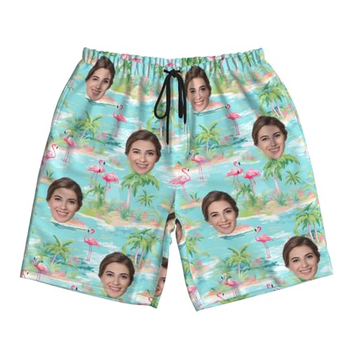 HOT ! Custom Face Mens Swim Trunks, Personalized Beach Board Shorts with Face for Men, Customized Quick Dry Swim Shorts