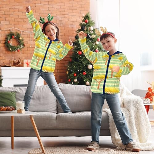 Tree Pattern with Yellow Leaves Toddler Fleece Jacket Girl Boys Hooded Fleece Jacket Coat Warm Outwear Zip-up 3-10T 3