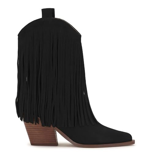 • Stacked chunky heel pointy boots: 3 inch chunky block heel mid calf western boots tassels provide a comfortable walking experience, even if walking for a long time without causing fatigue to your feet. Stacked heel cowboy calf boots retro elegance give this pair of pointed toe tassel western boots calf high more unique fashion sense.