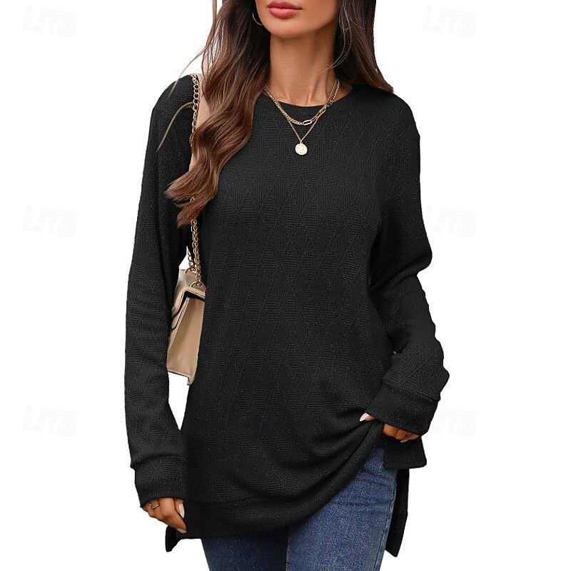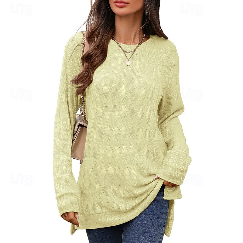 HOT ! Women's T Shirt Plain Casual Long Sleeve Crew Neck Regular Tops Daily Weekend Black Yellow Pink Navy Blue Fall