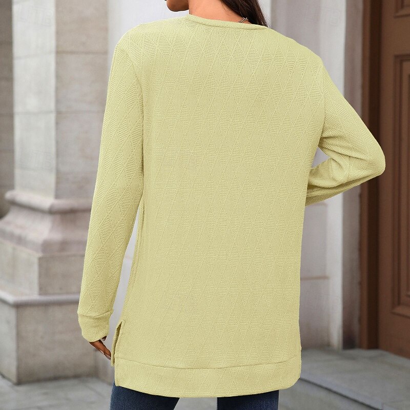 More information about Women's T Shirt Plain Casual Long Sleeve Crew Neck Regular Tops Daily Weekend Black Yellow Pink Navy Blue Fall
