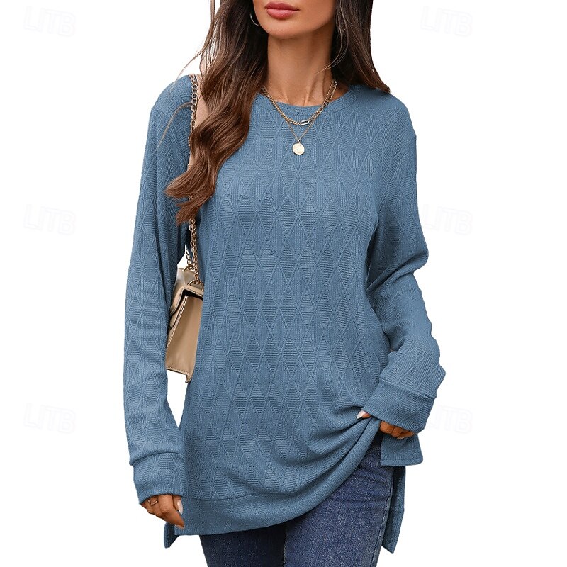 Highlights - Stay stylish and comfortable this fall with our women's long sleeve cotton and polyester blend top - Perfect for daily wear, this casual crew neck top can be dressed up or down for any occasion