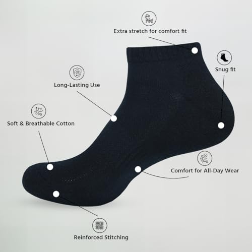 • DURABLE QUALITY FOR LONG-LASTING WEAR:Constructed from premium, resilient materials, these ankle socks are built to withstand frequent use and multiple washes without losing their shape or softness. Their reinforced design resists wear and tear, making them ideal for daily routines and intense workouts. These socks offer long-lasting comfort and are a reliable addition to your essentials, bringing enduring quality to your collection.