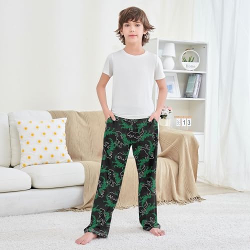ZZXXB Wild Dino Print Boys Long Pants Soft Trousers Elastic Waist Kids Lounge Bottoms with Pockets S-XL 5