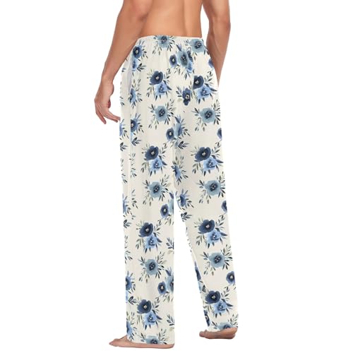 Mens Cotton Pajama Pants Sleep Lounge Pj Bottoms Sleepwear with Pockets Drawstring S Dark Blue Flower 1